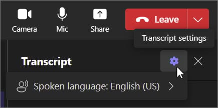 The transcription language must match the language spoken during the meeting. To change the transcription language, click on "Transcript settings" and select the desired language under "Spoken language."