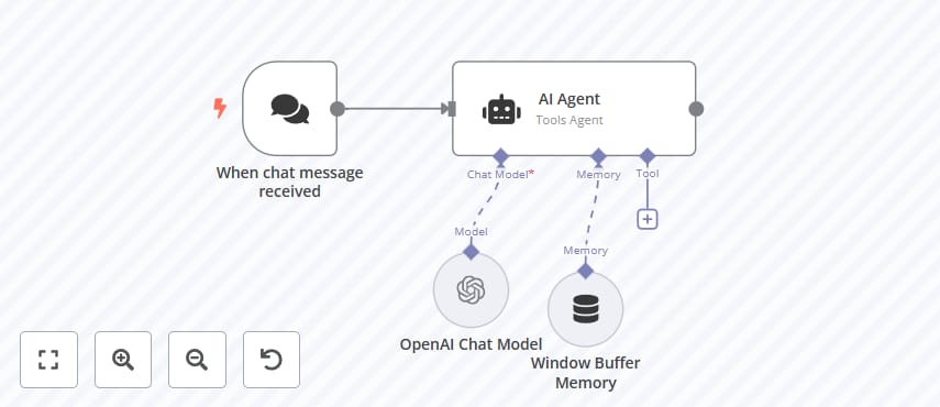 n8n works like a puzzle each action in the program is a separate node. For example, there can be a node for sending emails, updating data in a spreadsheet, or receiving information from an API. We will discuss more examples below.