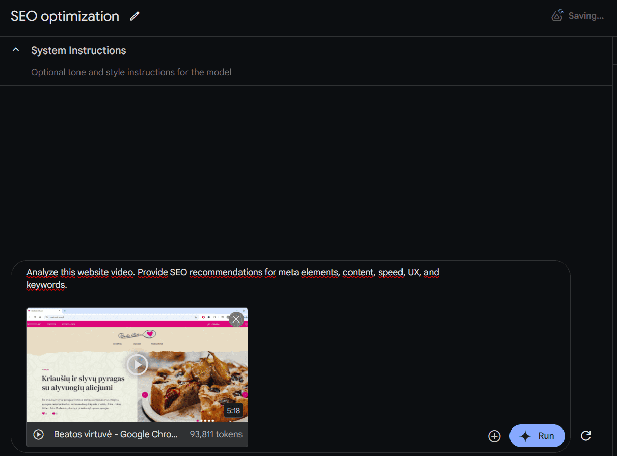 In addition to video analysis, Google AI Studio can also be used for SEO optimization with the help of various queries. Here are a few examples: